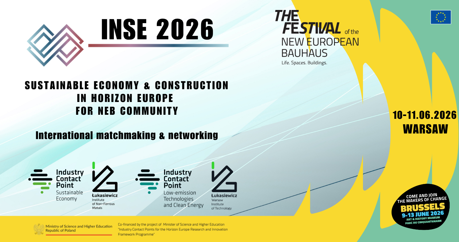 W dniach 10 – 11 czerwca 2026 w Warszawie odbędzie się piąta edycja: Sustainable Economy & Construction in Horizon Europe for NEB Community International matchmaking & networking (INSE’2026).